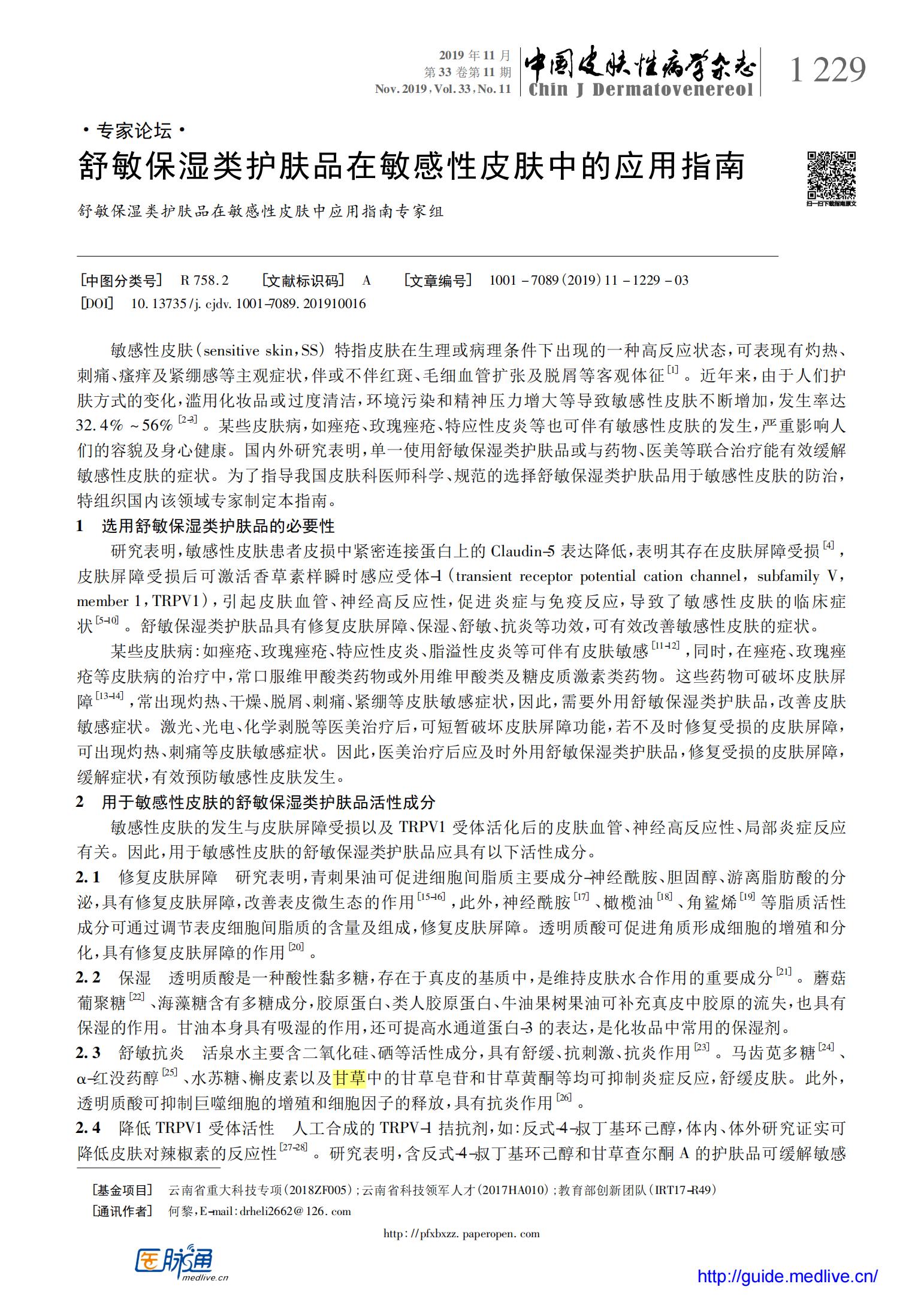 权威论文| 舒缓保湿类护肤品在敏感性皮肤中的应用指南